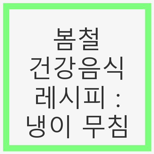 | 봄철 건강음식 레시피 : 봄나물 비빔밥, 건강을 챙기는 최고의 선택! (0) | 2025.04.07 |