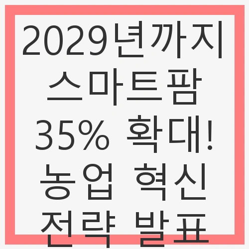 2029년까지 스마트팜의 35% 확대는 농업의 혁신적인 변화의 시작을 알리는 신호탄입니다. 스마트농업 기술의 도입과 관련 산업의 성장, 그리고 전문가 교육과 데이터 산업의 발전은 한국 농업의 새로운 미래를 열어줄 것입니다. 앞으로의 농업은 단순한 생산을 넘어, 지속 가능한 발전과 환경 보호를 동시에 추구하는 방향으로 나아갈 것입니다.